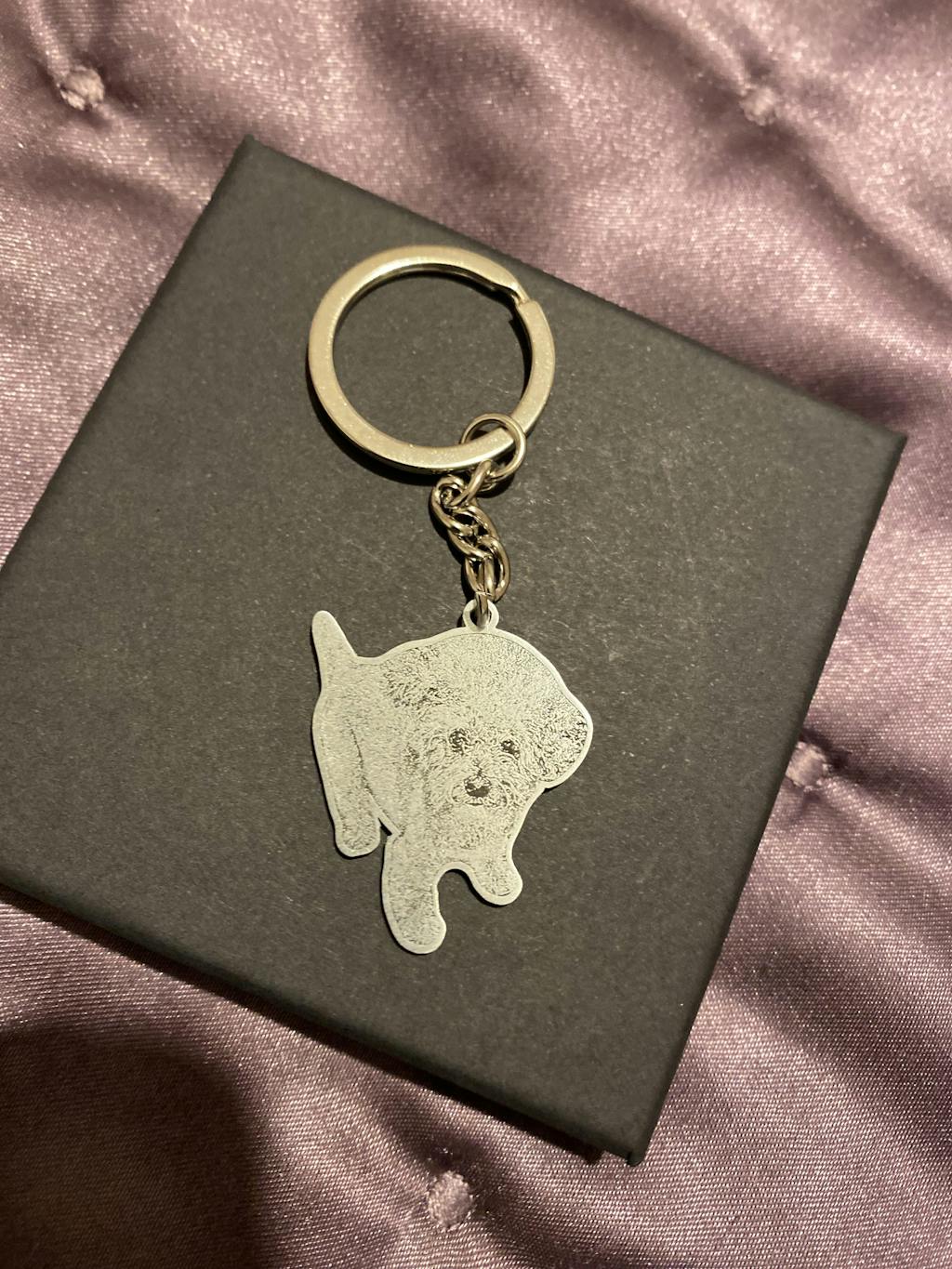 The keychain came in about 2 weeks after it was order, and I cannot be more happier with how it turned it. The detail matched the reference photo perfectly and I can’t wait to give it my friend for her bday